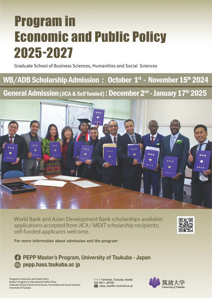 Read MoreWe are happy to inform all interested Tanzanians about the Program in Economic and Public Policy (PEPP), Master's Program in International Public Policy, from the University of Tsukuba. For admission…