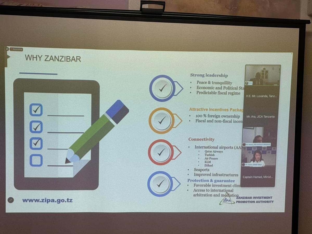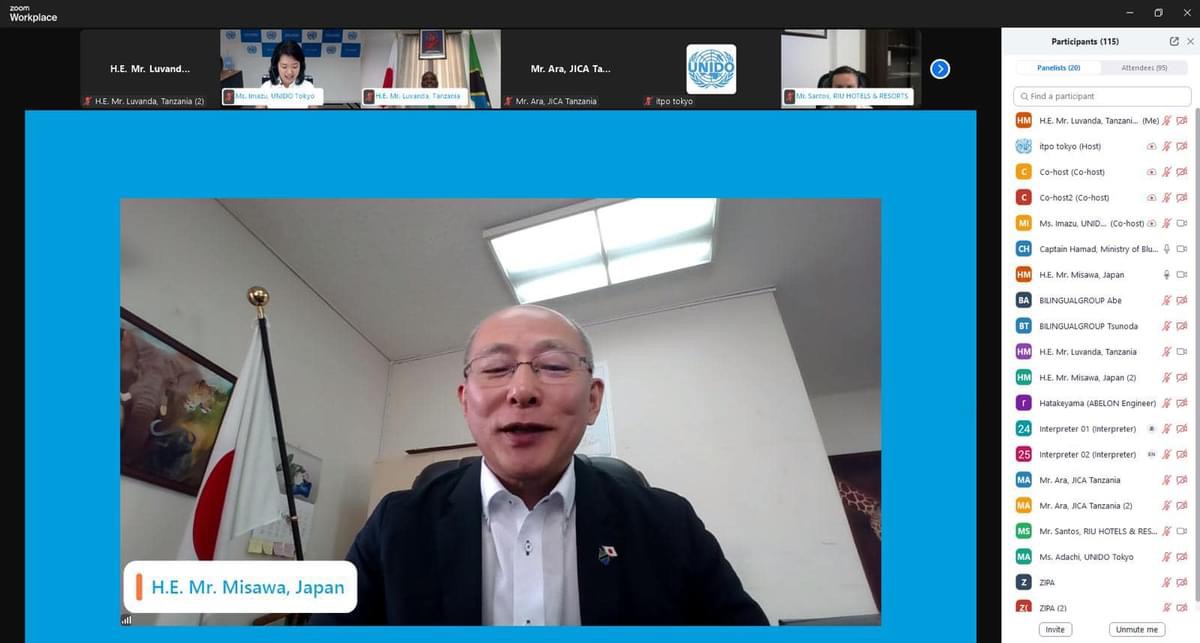 H.E. Baraka Luvanda, Ambassador of Tanzania in Japan as well as H.E. Yasushi Misawa, Ambassador of Japan in Tanzania, together with Principal Secretary of Ministry of Fisheries and Blue Economy - Zanzibar, delegates from ZIPA, JICA Tanzania, and a key business operating in Zanzibar graced the webinar, highlighting the immense investment potentials and opportunities available.