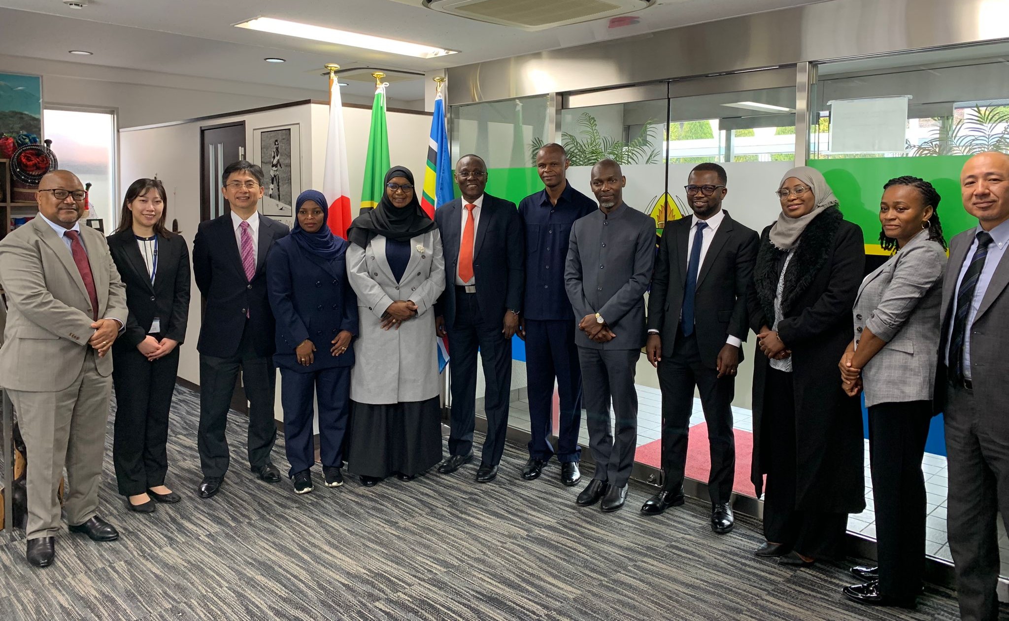 On 11th December 2023, a delegation of six (06) officials from Tanzania visited the Embassy, accompanied by four (04) officers from JICA Headquarters in Tokyo and JICA Tanzania Office in Dar es Salaam. The delegation was led by Mr. Aboud Mwinyi, Deputy Principal Secretary of Zanzibar President's Office, and comprised representatives from the Zanzibar President's Office responsible for Finance and Planning; Tanzania Ministry of Finance; and Zanzibar Water Authority (ZAWA). Other high-ranking officials in attendance included Dr. Salha Mohammed Kassim, Director - General of ZAWA, and Mr. Melckzedek Mbise, Deputy Commissioner at the Ministry of Finance.