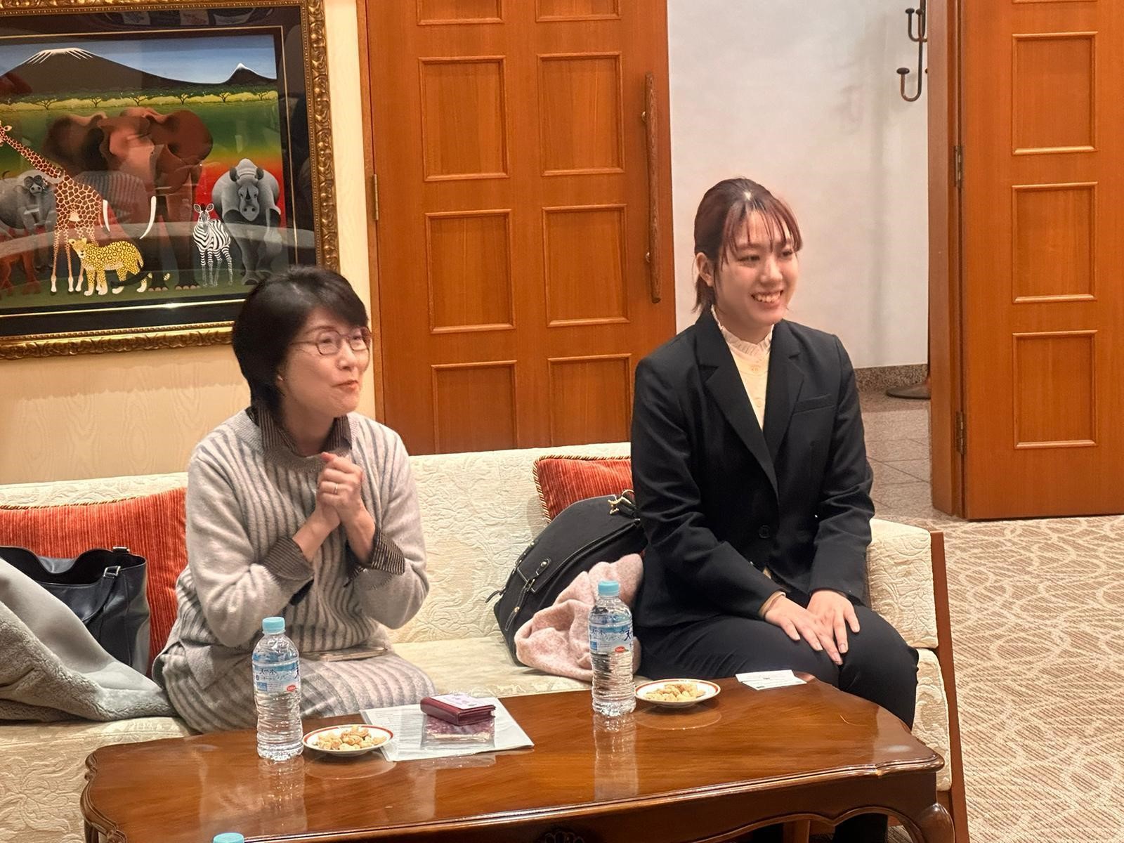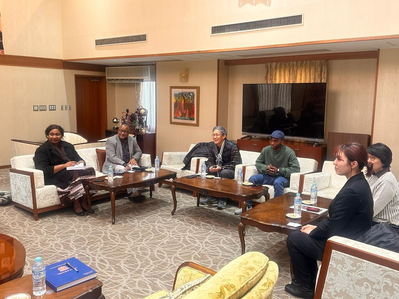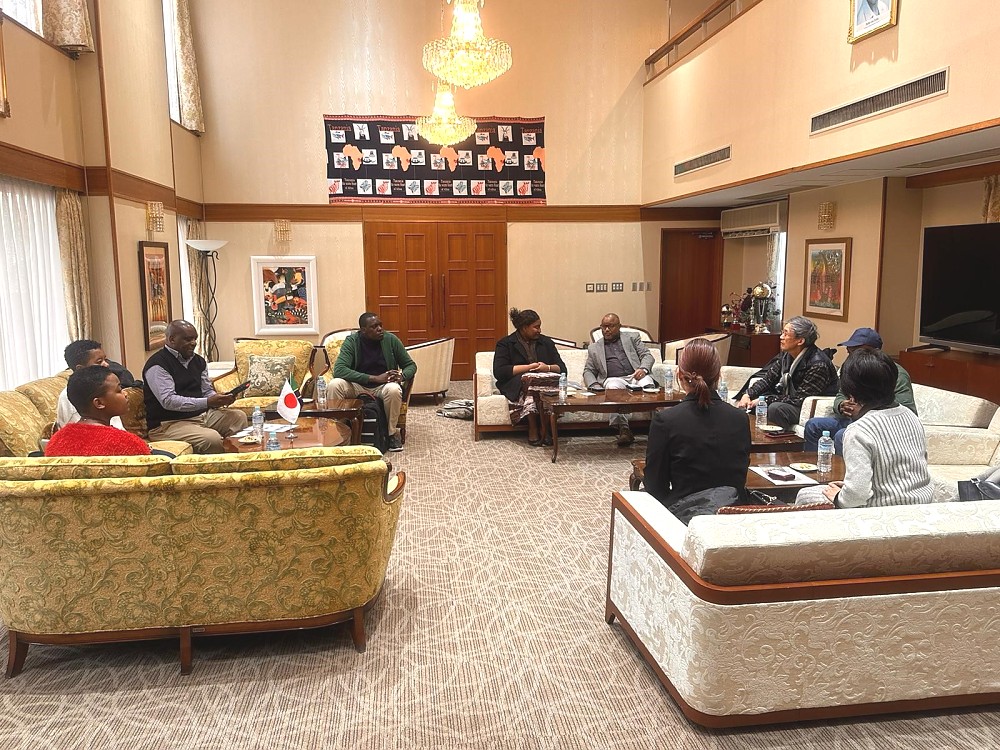 During the meeting with Ambassador Baraka Luvanda, they expressed their sincere gratitude for the opportunity to meet and share their three months experience in Japan. They informed that whereas their three months stay was so short, they were happy to have accumulated so much knowledge and understanding of the Japanese culture and the people. The delegation also extended invitation to Ambassador Luvanda and Embassy officials to attend the farewell reception to the two students which would take place on 14th February 2024, at Showa Women University premises in Tokyo.