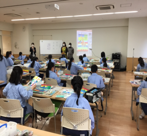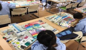 Each year Mr. and Mrs. Shimaoka of Baraka Co. Ltd based in Zanzibar, Tanzania with one Tingatinga painter visit the school and conduct Tingatinga workshop in order to promote Tanzanian cultural heritage and strengthen the relationship between Tanzania and Japan through cultural exchanges.