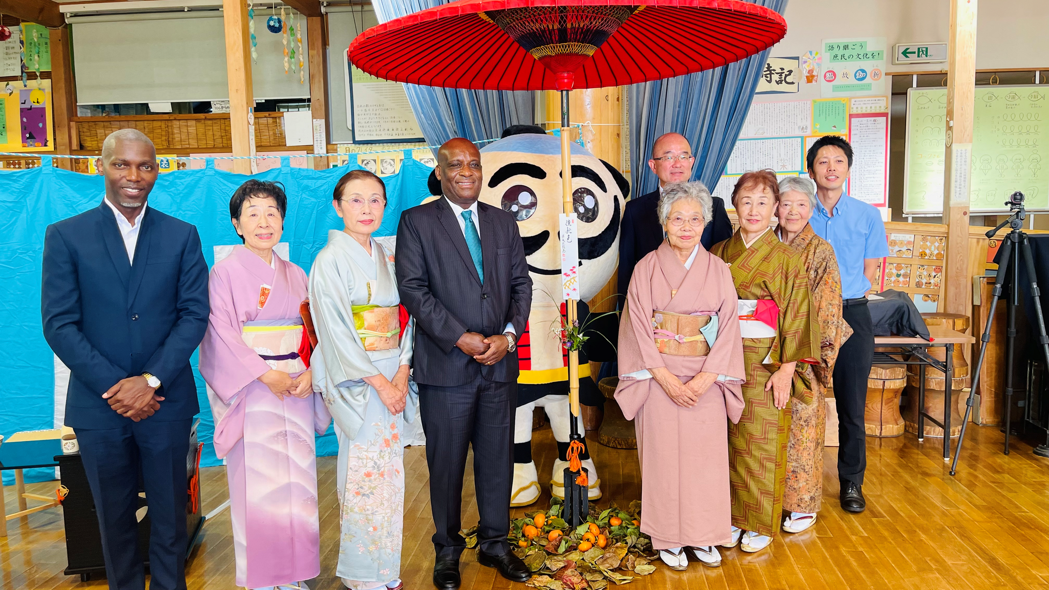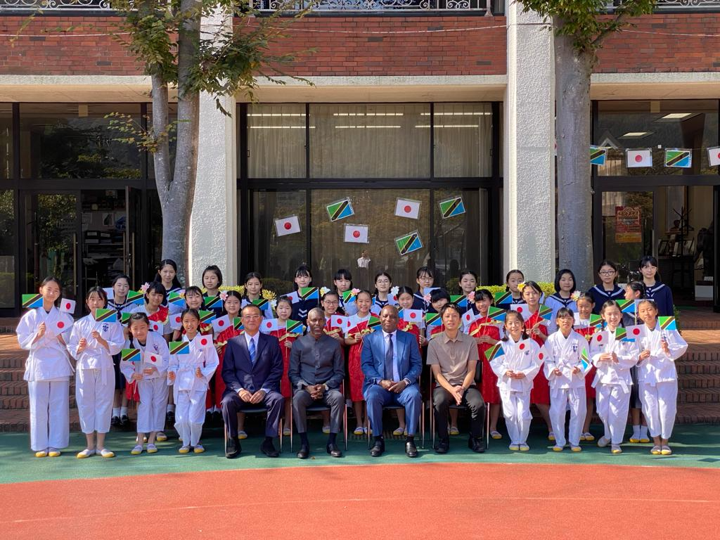 Picha ya Pamoja ya Balozi na Meya wa Matsuda, Bw. Hiroyuki Motoyama, Mkuu wa Bodi ya Elimu ya Matsuda, Bw. Kazuyuki Josen, Bw. Suzuki Koji, Bw. Greyson Ishengoma na Bw. Kazuma Shirai kutoka Balozi wa Tanzania wakiwa katika Shule ya Msingi ya Matsuda.