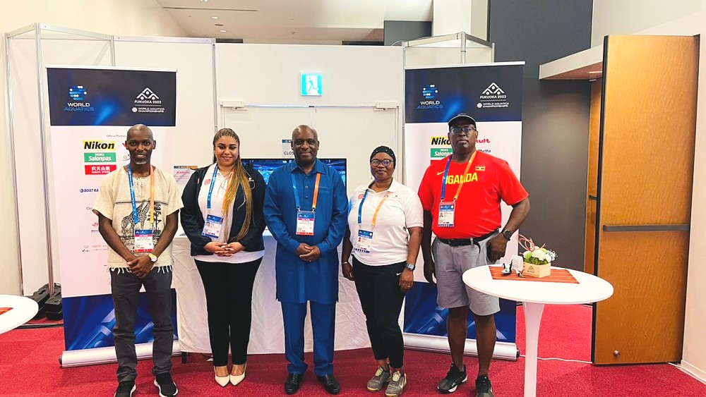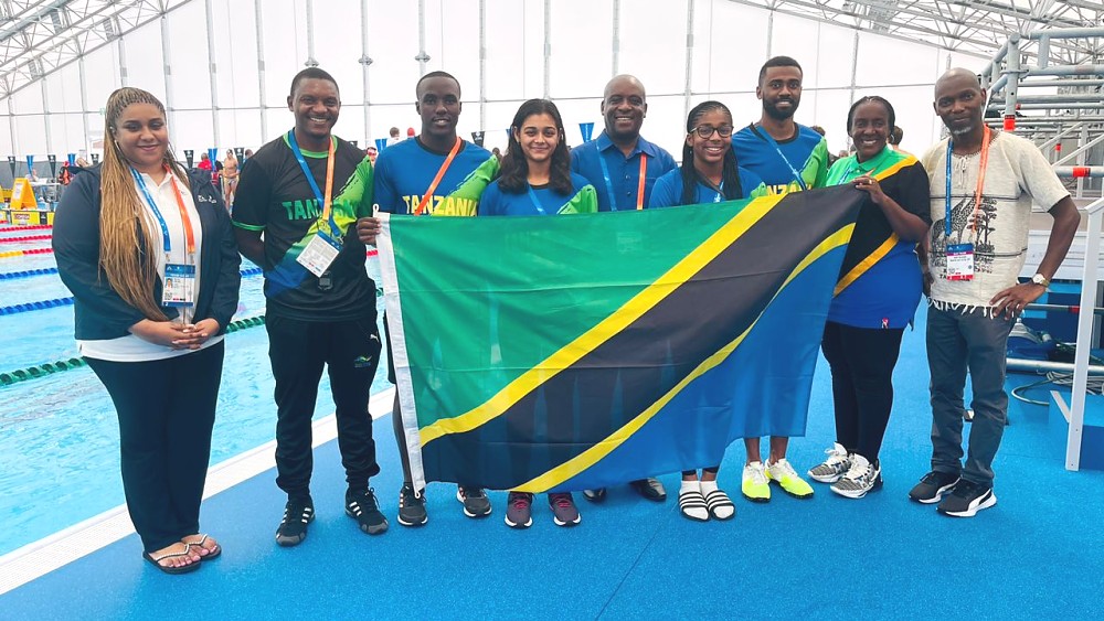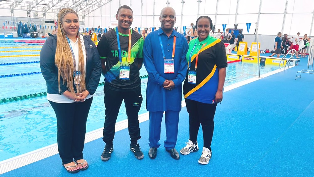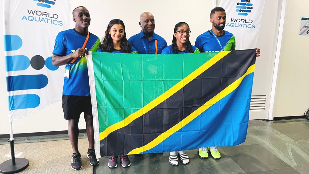 BALOZI BARAKA LUVANDA AJUMUIKA PAMOJA NA TIMU YA WAOGELEAJI YA TANZANIA KATIKA MASHINDANO YA DUNIA YA MICHEZO YA KWENYE MAJI FUKUOKA 2023