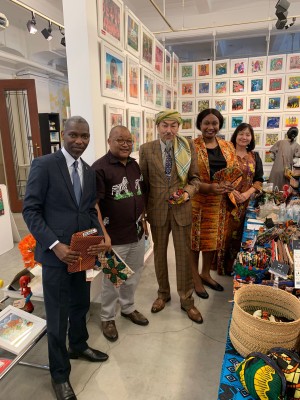 On 6th May 2022, the Embassy officials led by Mr. Greyson Ishengoma, Chargé d'affaires interim on behalf of the Ambassador Baraka H. Luvanda visited the 13th Tingatinga Exhibition in Yokohama. The Embassy officials were greeted and guided by Mr. Tsuyoshi Shimaoka, the Chairman of Baraka Co. Ltd and Mrs. Yumiko Shimaoka, Director of Baraka Co. Ltd who are the organizers of the event.