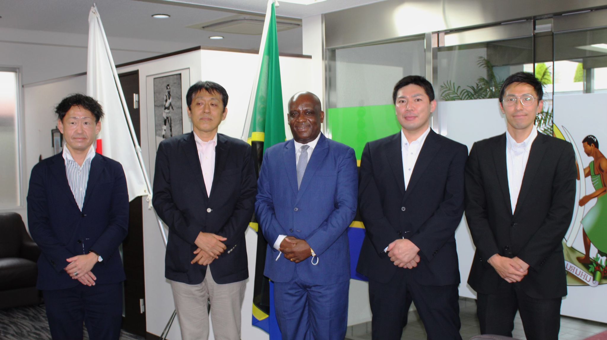 On Tuesday 14th June 2022, the Director General for International Affairs of the Japan Firefighters Association, Mr. Nezuka Takeshi paid a courtesy call on H.E. Ambassador Baraka Luvanda at the Chancery. Mr. Takeshi was accompanied by Mr. Endo Takashi, Specialist for International Fire Services Cooperation from the Ministry of Internal Affairs and Communications of Japan, together with Mr. Oura Kazuya and Mr. Uehara Yasuaki, Assistant Directors of the Japan Firefighters Association. The courtesy meeting was also attended by Embassy officers, namely, Mr. Greyson Ishengoma, Ms. Edna D. Chuku, Mr. Hosea Chikolongo and Ms. Emi Tanaka.