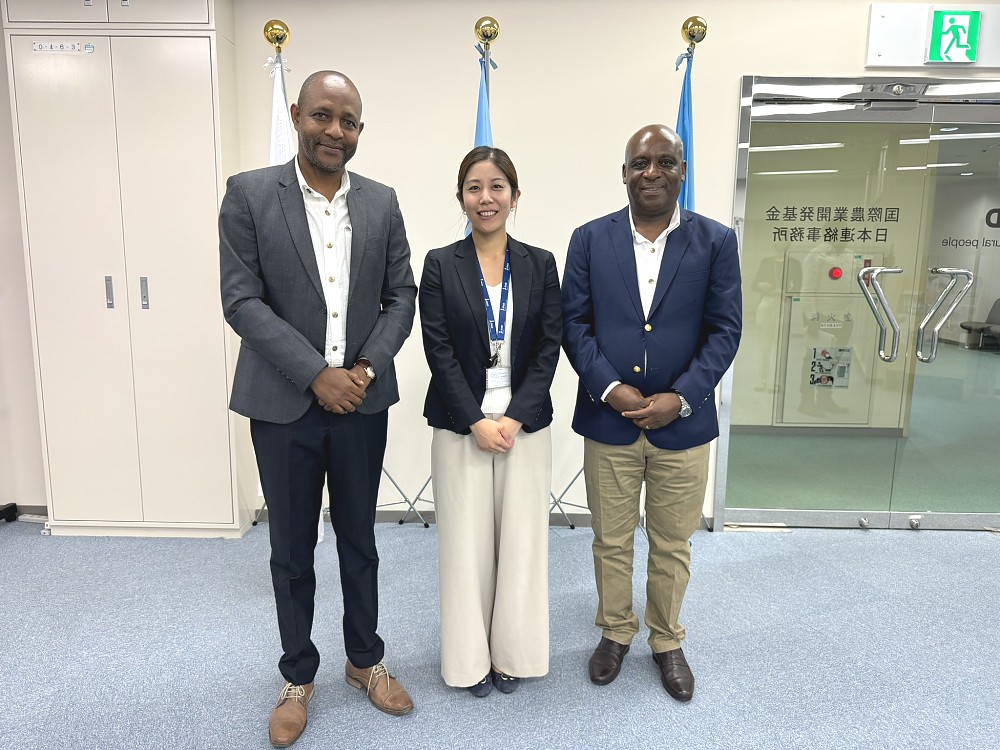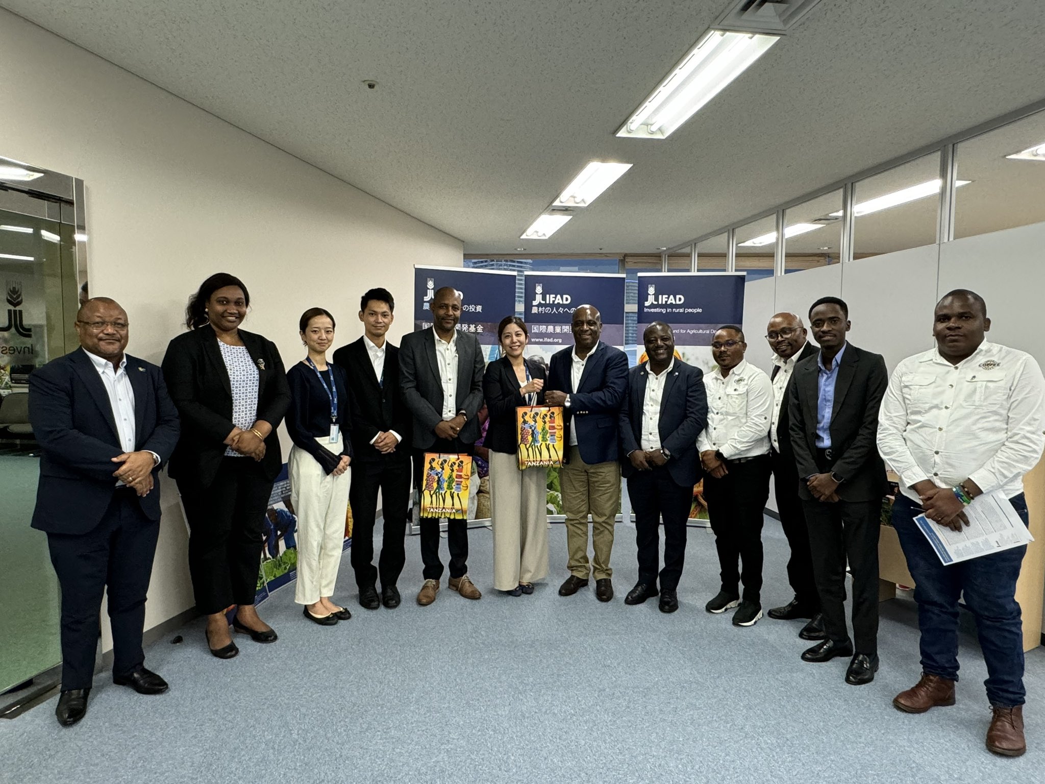 On October 10, 2024, His Excellency Ambassador Baraka Luvanda and Mr. Primus Kimaryo, Director General of the Tanzania Coffee Board, paid a courtesy visit to the IFAD Japan Office in Yokohama, where they engaged in a hybrid meeting with IFAD staff in Yokohama and Headquarters in Rome, Italy.