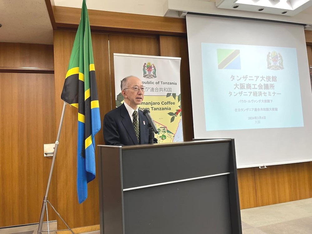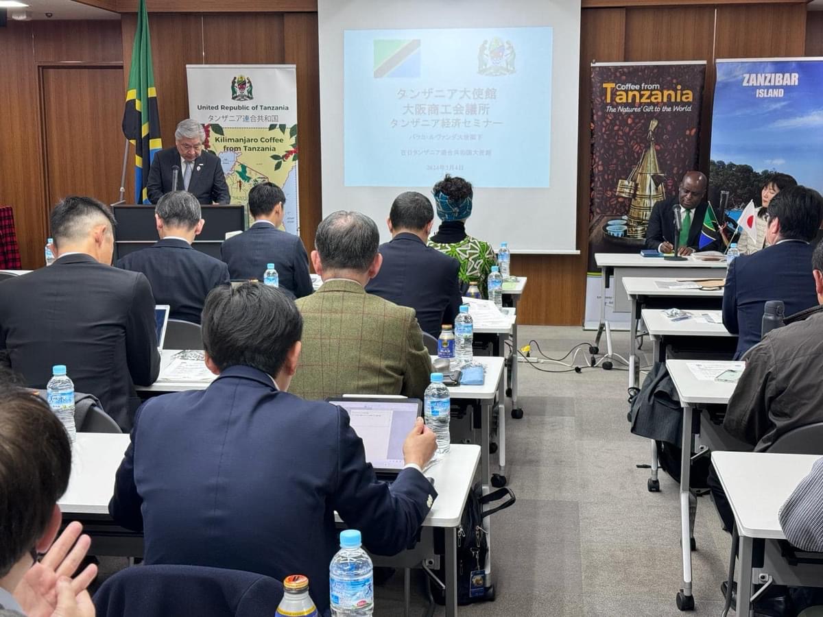 On 4th March 2024, Ambassador Baraka Luvanda delivered an investment promotion seminar to highlight Tanzania investment opportunities to the Osaka Chamber of Commerce and Industries (OCCI), Japan's second-largest chamber of commerce. The seminar was attended by a selected group of approximately 50 members of OCCI, led by Mr. Kuroda Akihiro, the Vice-Chairman of OCCI and the Chairman of the KOKUYO Company.