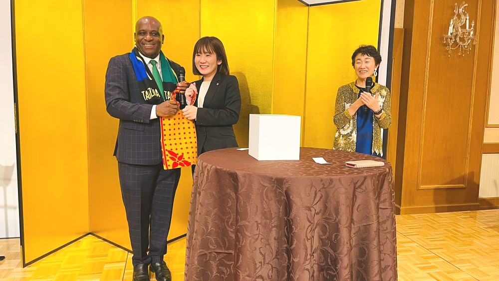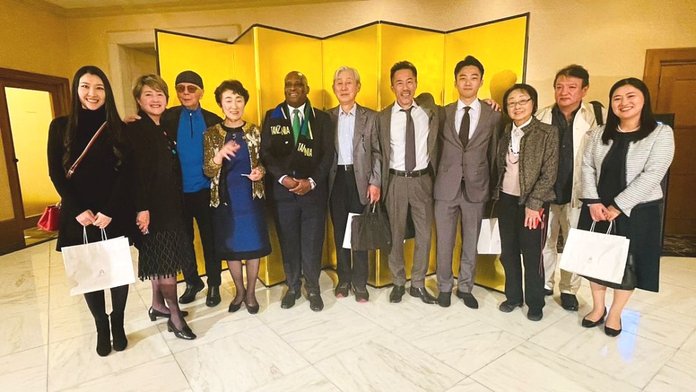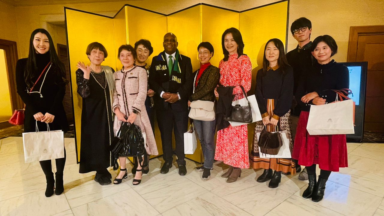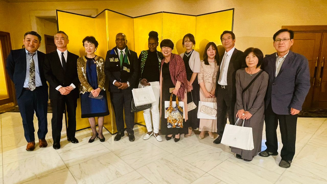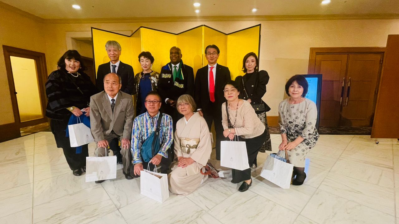 The event was held at the Hotel Princess in Kyoto attended by about 80 participants. Ms. Kuniko Shimizu - The CEO of Tanzaniaphilia Gallery and Honorary Representative of Tanzania for Promotions and Cultural Exchanges in Central Japan along with the General Manager of the Gallery Mr. Katsuji Mori expressed their joy of having the event the period within which the Tingatinga Exhibitions are being held from 20th October 2023 to 12th November 2023. They organized a number of activities including music live performance; fun raffle that made participants win Tingatinga decorated products; banquet; and presentation about Tanzania which made people enjoy listening to stories about a number of tourist attractions from wildlife experience, nature reserve, food, beverages, cultural heritage, beach sports, to historical art sites, Mountain climbing, air ballooning, fishing, hunting and many others.