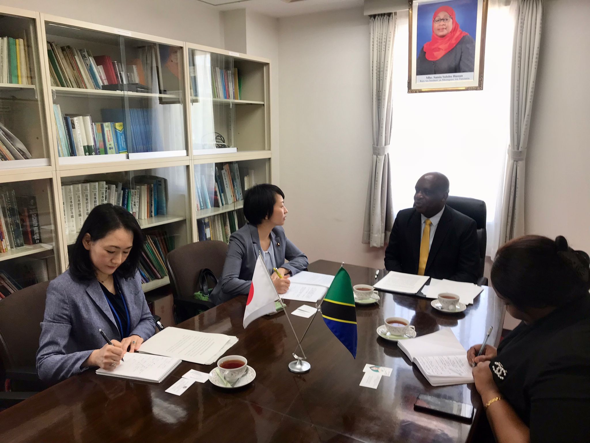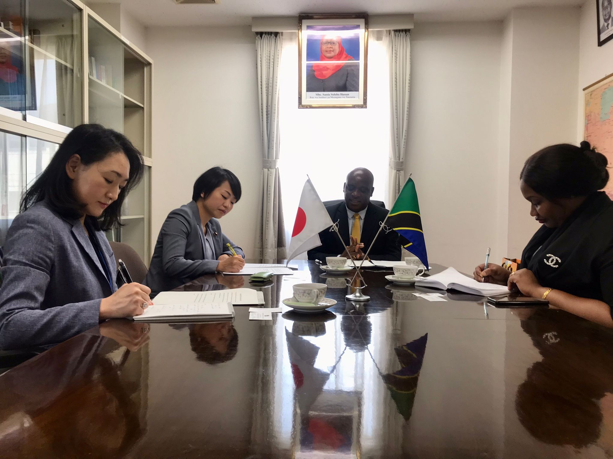 On Monday, 17 April 2023, Ms. SUZUKI Takako, Member of the House of Representatives and Deputy Secretary - General of LDP paid a courtesy visit to H.E. Amb. Luvanda at the Chancery. Ms. SUZUKI was accompanied by Ms. MATSUI Mihoko, Deputy Director - Second African Division, African Affairs Department, Ministry of Foreign Affairs of Japan.