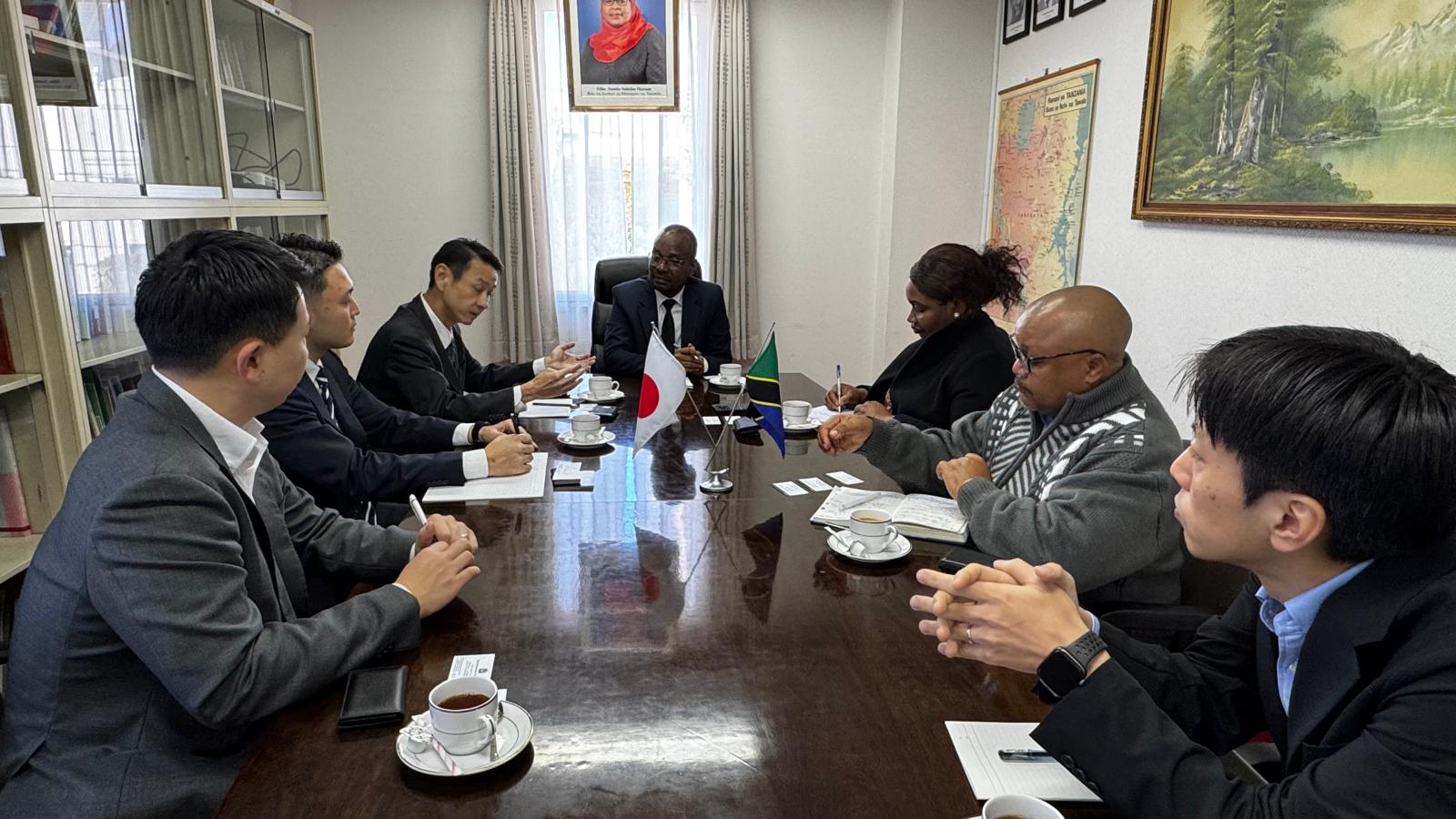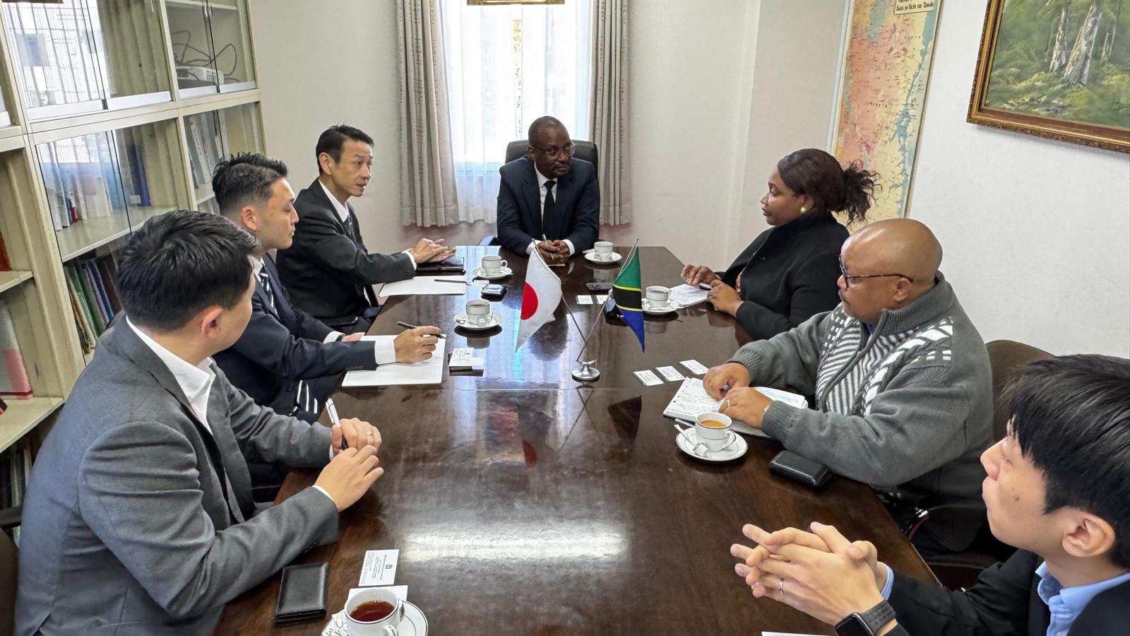 On December 1, 2025, His Excellency Anderson Mutatembwa, Ambassador-Designate, held a meeting at the Chancery with three representatives of Sumitomo Mitsui Banking Corporation (SMBC), a prominent Japanese financial institution. SMBC currently maintains an established relationship with Kubota Corporation of Japan, has executed a memorandum of understanding (MOU) with Tanzania’s CRDB Bank, and collaborates closely with Agricom Company of Tanzania.