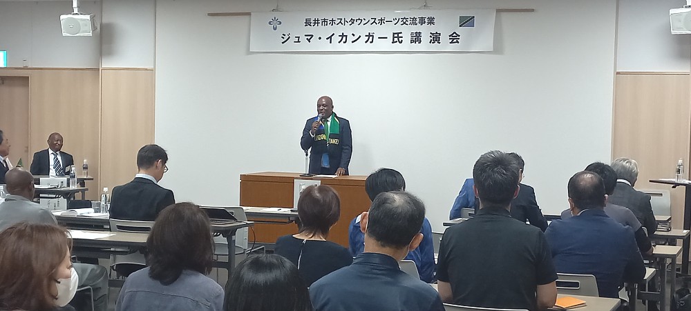 Mheshimiwa Balozi Baraka Luvanda, akitoa hotuba wakati wa Hafla ya Kuwakaribisha Wanariadha wa Tanzania kwenye Mashindano ya Nagai Marathon 2023, iliyofanyika tarehe 14 Oktoba 2023, jijini Nagai