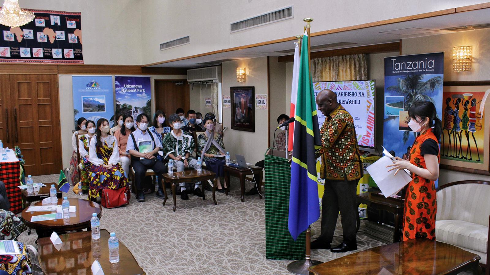 BALOZI BARAKA H. LUVANDA, BALOZI WA JAMHURI YA MUUNGANO WA TANZANIA NCHINI JAPAN WAKATI WA HAFLA YA KUADHIMISHA SIKU YA KISWAHILI DUNIANI,