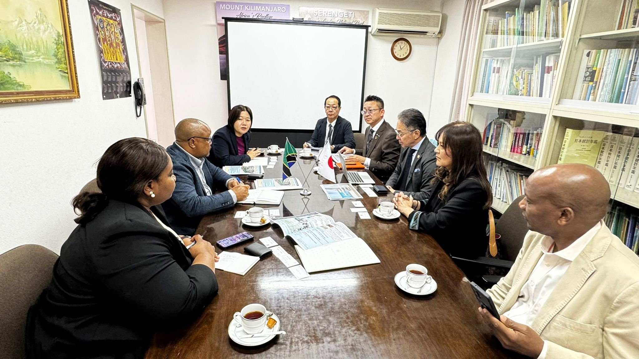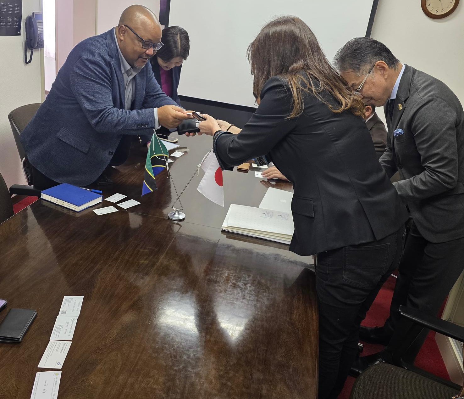 On 7th November 2025, the Embassy of the United Republic of Tanzania in Tokyo held a meeting with representatives from two Japanese companies, KIZUNA KAIHATSU and WELL MEDICAL GROUP. The companies were introduced by Mr. Willy Ngoya of WILNA International, a member of the Tanzanian Diaspora in Japan. The delegation informed that their visit aimed at exploring potential business collaborations and Official Development Assistance (ODA) projects in Tanzania. Attending from the companies were Mr. Tetsuo Maeda, Director and Chief Sales Executive of Well Medical Group, and Mr. Seichi Ryoke, Chief Executive Officer of Kizuna Kaihatsu, accompanied by other company officials.