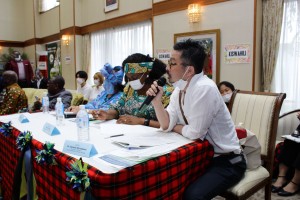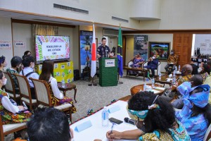 Balozi Luvanda akitoa zawadi kwa washiriki wengine wa Shindano ikiwa ni katika kuwa hamasisha zaidi kujifunza na kuwafundisha wengine Lugha ya Kiswahili