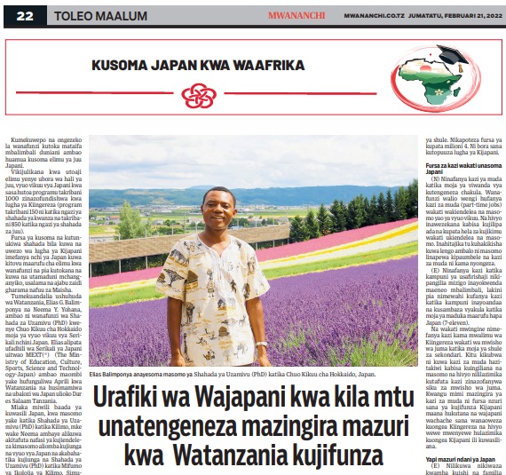 Mwananchi Toleo Maalum, “Kusoma Japan Kwa Waafrika” Februari 21, 2022