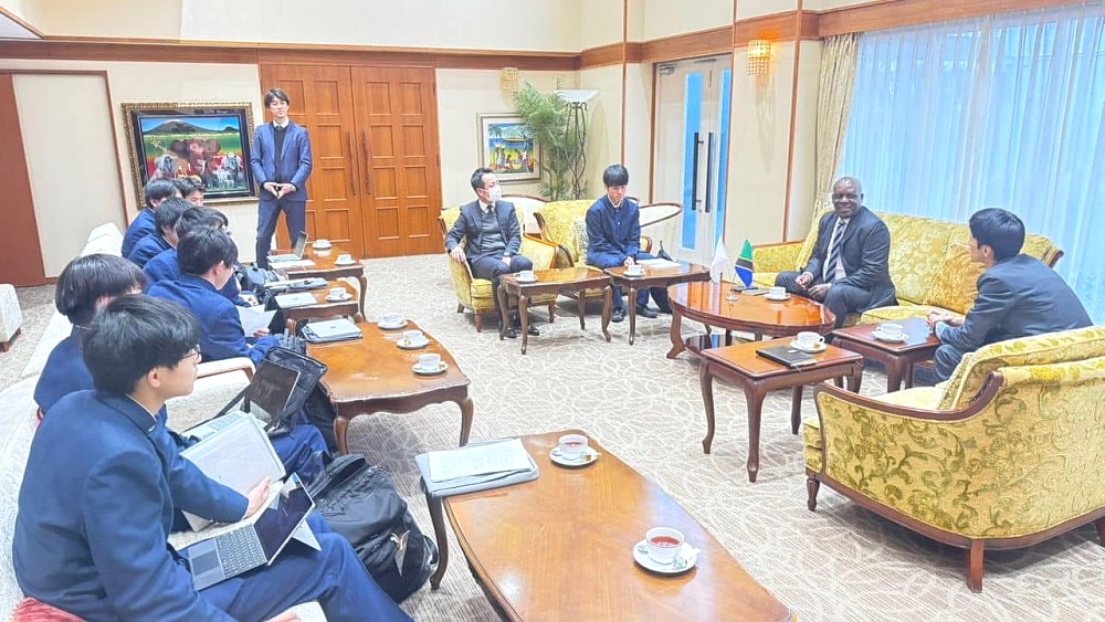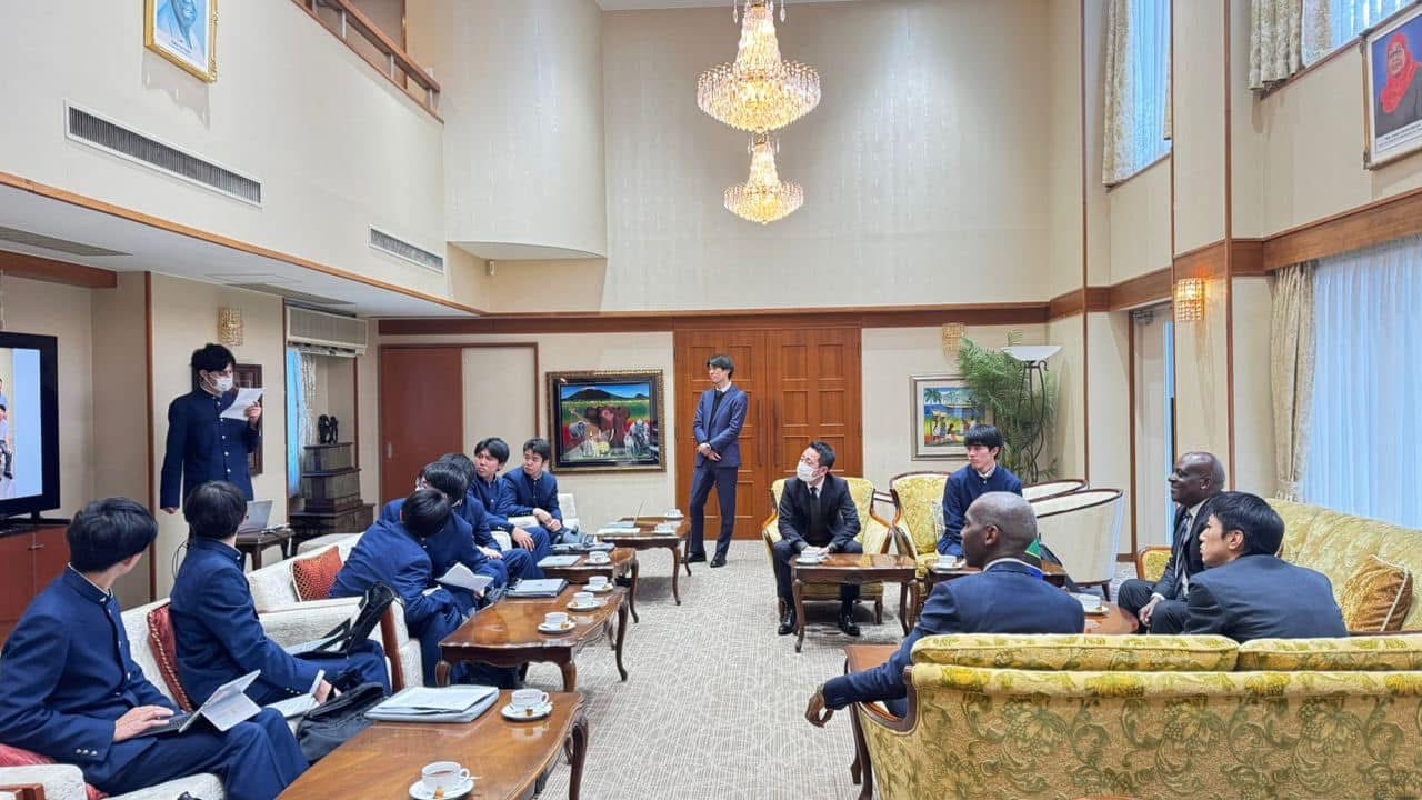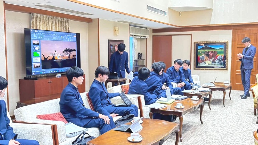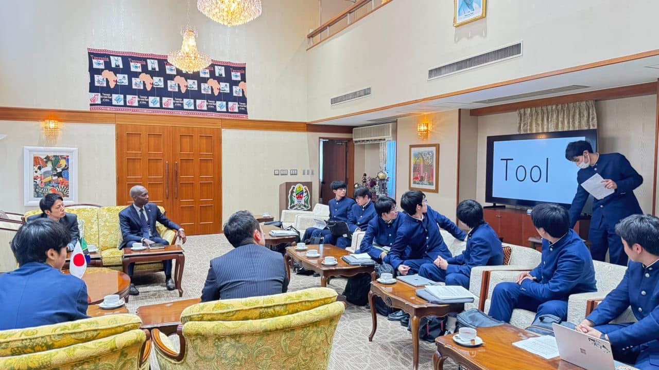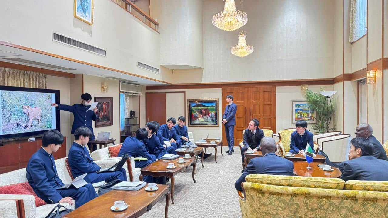 On December 18, 2024, nine students and two teachers from Adachi Gakuen Junior and Senior High School paid a courtesy visit to the Embassy, where they were warmly welcomed by H.E. Ambassador Baraka Luvanda. Mr. Takuro Komine, the lead teacher of the trip, explained that the purpose of their visit was to share feedback on their successful 10-day trip to Tanzania in July 2024.