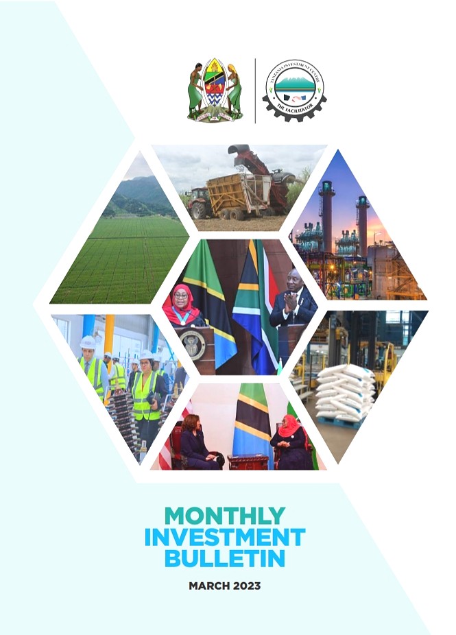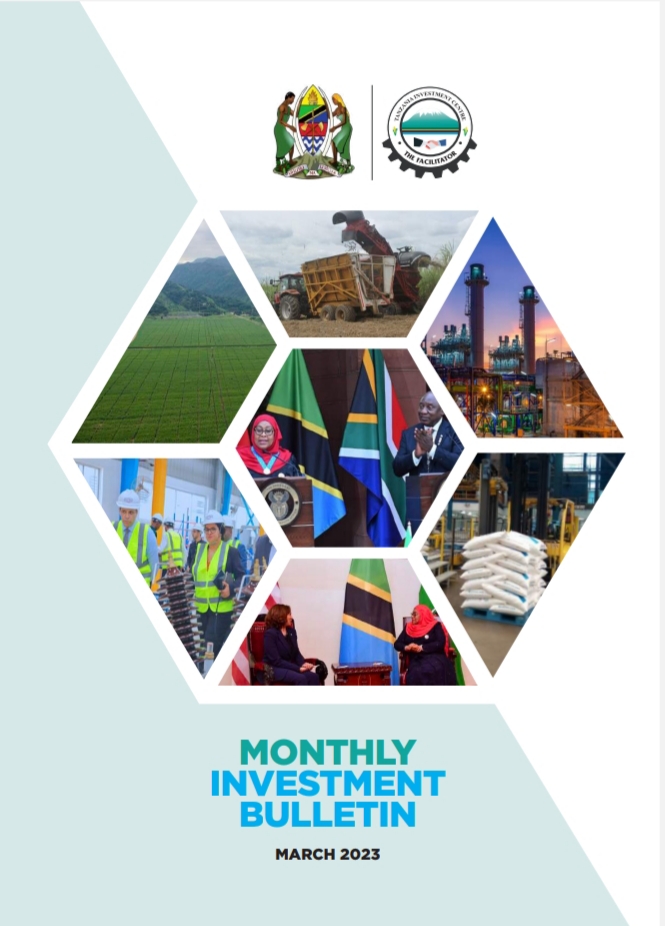 The Embassy is pleased to share with you the Investment Bulletin for March 2023 issued by Tanzania Investment Centre (TIC). The information herein will facilitate your investment interest, prioritization, decision, and provides you a level of confidence and information about Tanzania - the new centre of business and investment in Africa.
