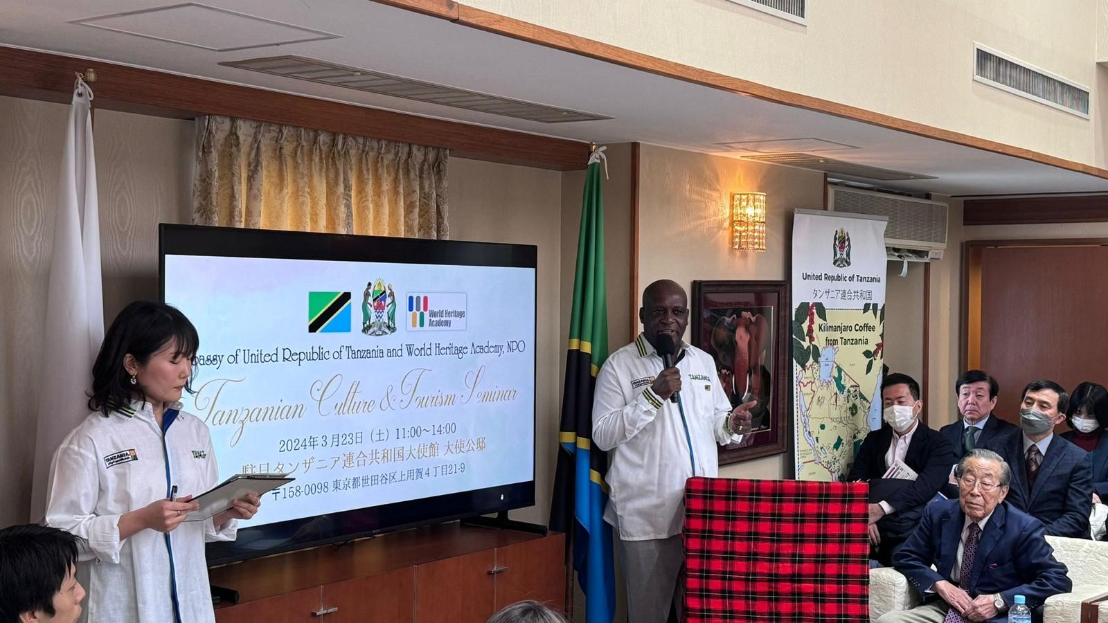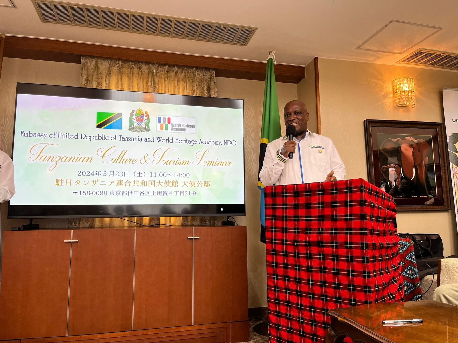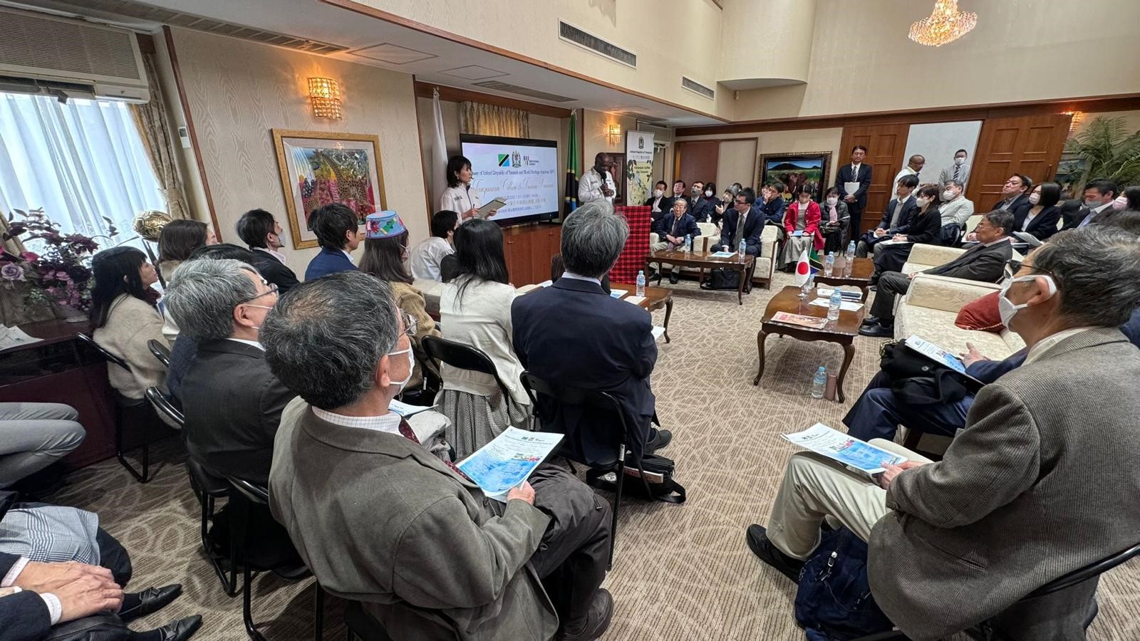 On March 23rd, 2024, the Embassy and World Heritage Academy (WHA), a Japanese non-profit organization, jointly organized a cultural and tourism promotion event. This event was attended by 60 Japanese individuals and friends of Tanzania. The purpose of the event was to promote the attractions of Tanzania to the Japanese people and to provide an opportunity for them to deepen their knowledge about the country. This year's event followed on from the previous event that took place in 2013.