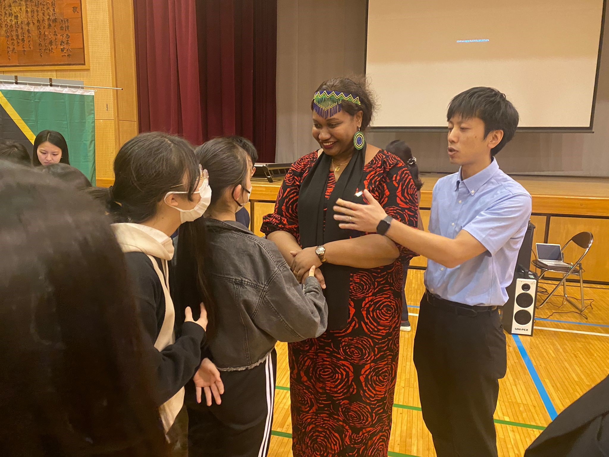 In delivering a message on behalf of H.E. Ambassador Baraka Luvanda, the First Secretary Ms. Edna Dioniz Chuku, expressed gratitude to Principal Matsumoto and his staff for their hospitality and for the promotion of Tanzania at the school. She also conveyed appreciation to Ms. Okada for establishing the CMC Project, which helps Japanese students to nurture and comprehend the culture of other nations.