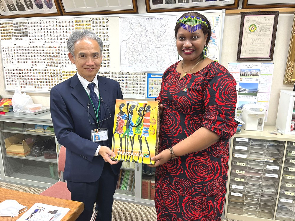 On 31st October 2023, the Embassy made a visit to Daisan-Hino Elementary School and delivered a presentation on Tanzania to 110 grade 4 students, along with their teachers and other school officials. The Embassy officials were warmly welcomed by Mr. Saturo Matsumoto, the School Principal, and Ms. Tamaki Okada, the NPO CMC Chief Director and Secretary General, who organized the school visit.