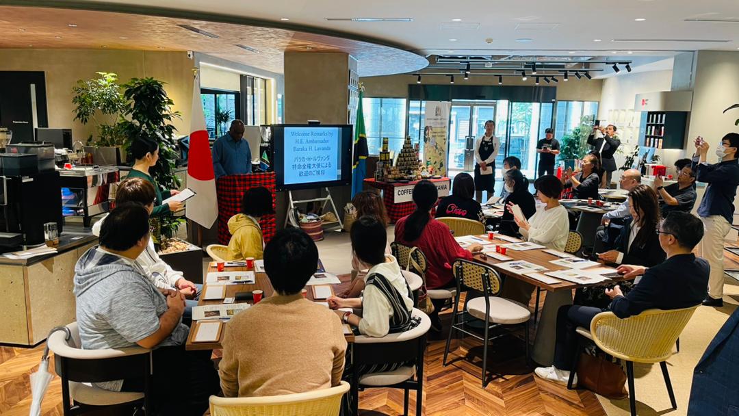 A group of around 25 coffee experts from Tokyo gathered to taste the best four coffee samples from Tanzania, which were served on the day, illustrating four different Tanzania coffee production zones and geographical diversity: the North, South, West, and Lake zones.