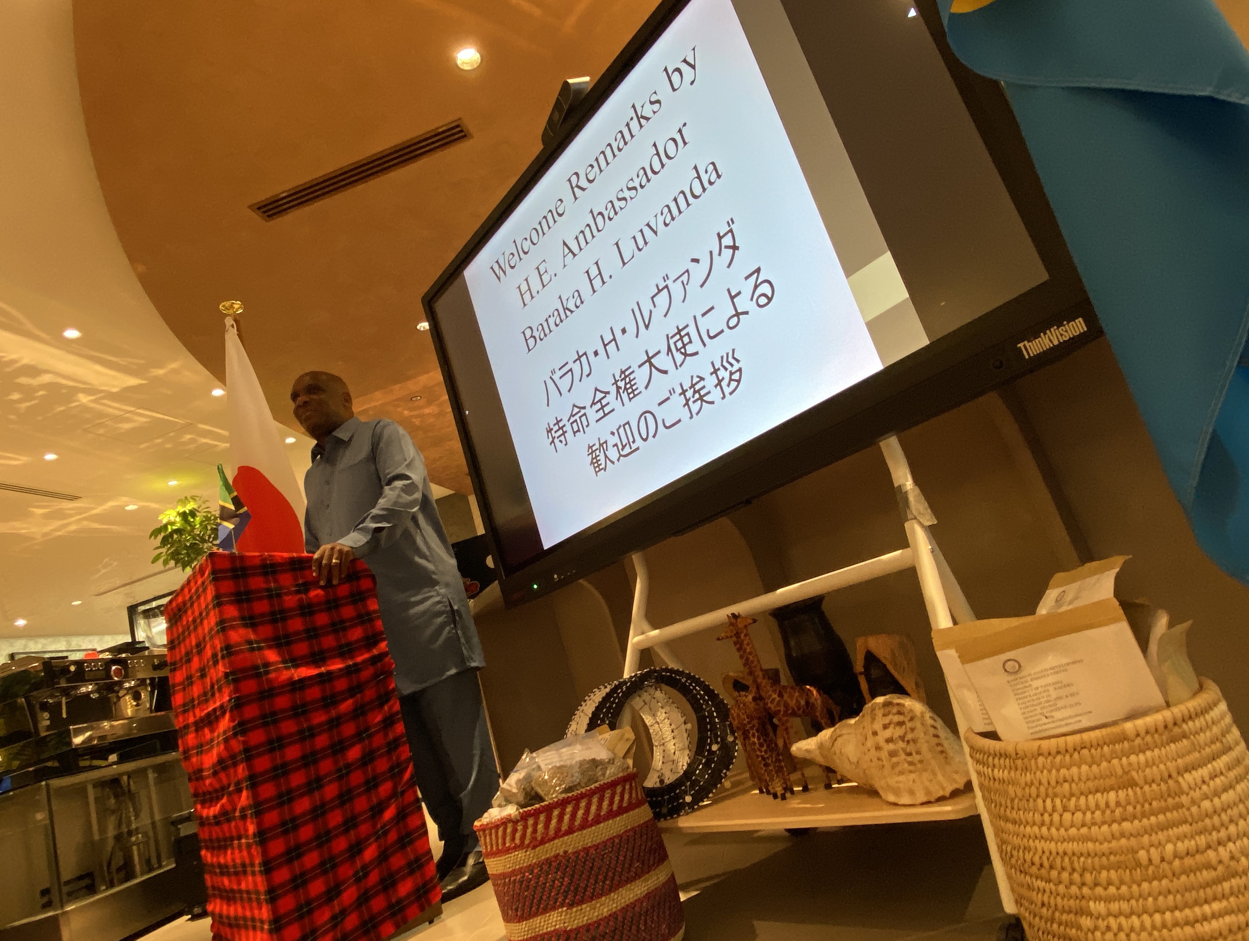 In his welcoming remarks to the audience, H.E. Ambassador Luvanda expressed his gratitude to the co-organizers of the event for coming up with the concept of countries special coffee gatherings, for putting it into practice, and for choosing Tanzania to honor the uniqueness and distinctiveness of the Tanzanian Coffee which is well loved in Japan.
