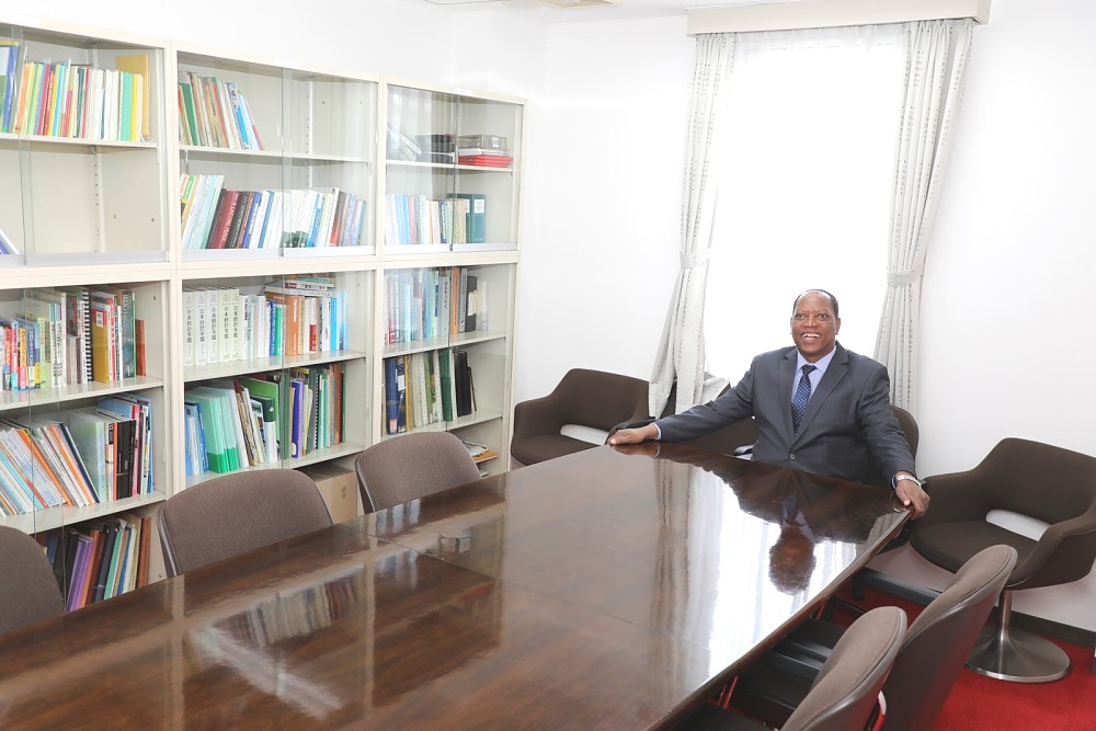 Waziri wa Mambo ya Nje na Ushirikiano wa Afrika Mashariki Prof. Palamagamba John Kabudi (Mb) akiwa katika moja ya Maktaba ya vitabu iliyopo katika Ubalozi wa Tanzania - Tokyo,Japan. August 26,2019.