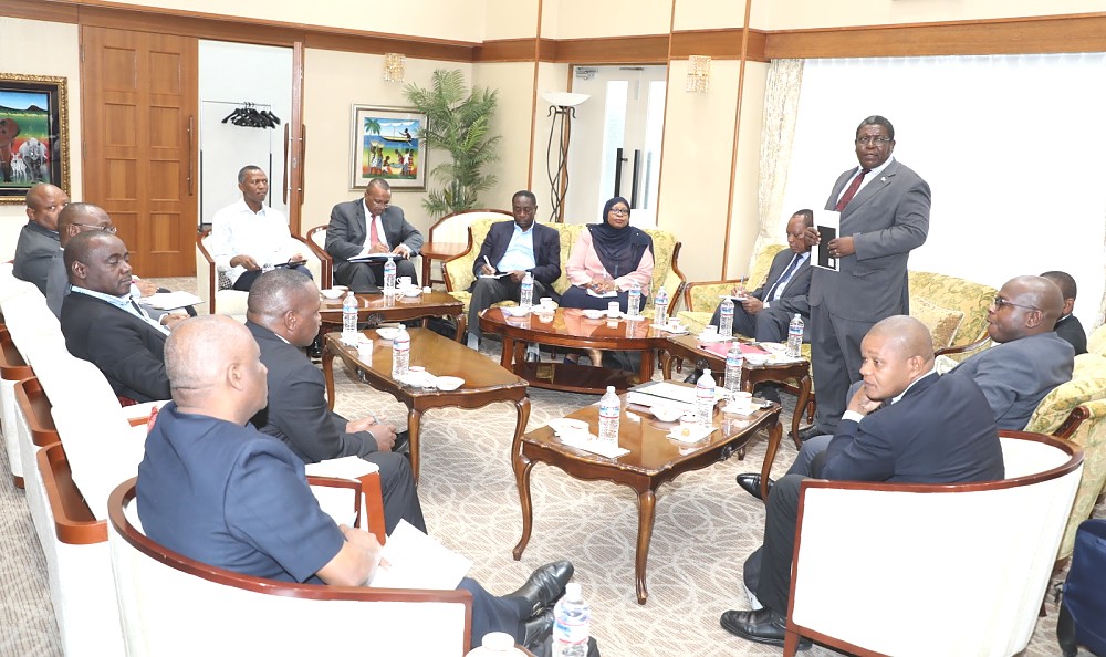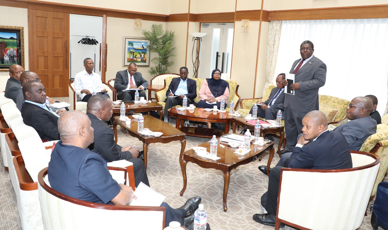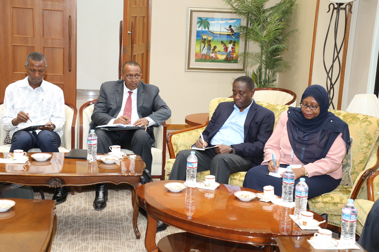 Baadhi ya wajumbe waliopo Yakohama-Japan kushiriki Mkutano wa Kimataifa wa Tokyo kuhusu Maendeleo ya Afrika 2019 (TICAD7 YOKOHAMA 2019) wakiwa katika kikao kazi cha Waziri wa Mambo ya Nje na Ushirikiano wa Afrika Mashariki Prof. Palamagamba John Kabudi(hayupo Pichani). August 26,2019.