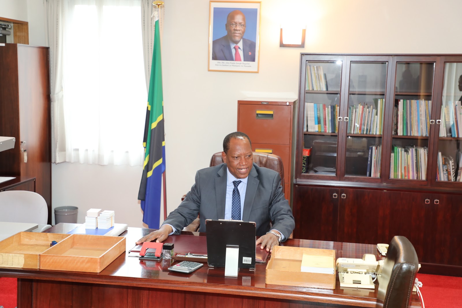 Waziri wa Mambo ya Nje na Ushirikiano wa Afrika Mashariki Prof. Palamagamba John Kabudi (Mb) akiwa katika ofisi ya Balozi wa Tanzania Nchini Japan. August 26,2019.