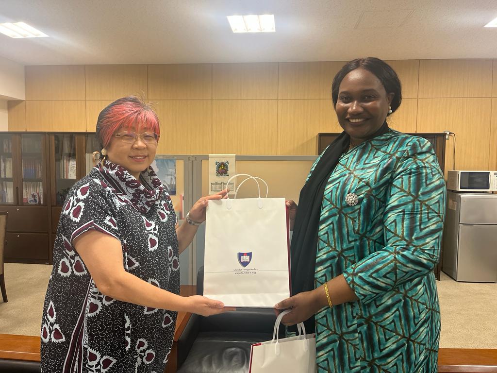Tarehe 7 Juni 2023, Ubalozi ulifanya ziara katika Chuo Kikuu cha Osaka kilichopo Osaka, Japan na kufanya mazungumzo na Prof. Tekemura Keiko, Mkuu wa Kitivo cha Lugha za Kigeni chuoni hapo. Bi. Edna Dioniz Chuku, Afisa Ubalozi aliyemwakilisha Mhe. Balozi Baraka Luvanda katika ziara hiyo iliyolenga ushirikiano katika uendelezaji wa Lugha ya Kiswahili nchini Japan ambapo, Chuo Kikuu cha Osaka ni miongoni mwa vyuo vikuu vinavyofundisha Lugha ya Kiswahili.